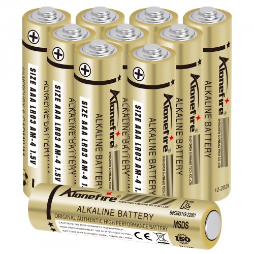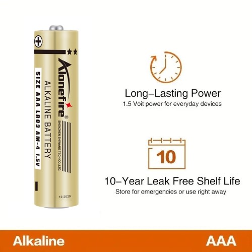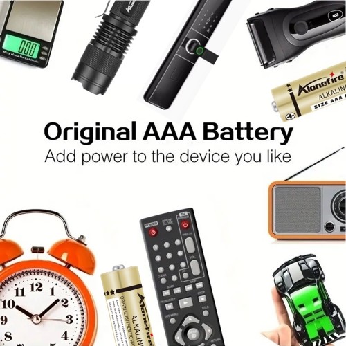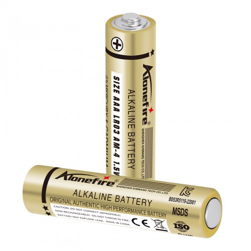 Others bought: Specifications: Standard AAA Alkaline batteries Brand: AloneFire Type: Alkaline Dry Battery(Disposable battery) Model: AAA/LR03 Size: 4.2cm/1.5inch x 1cm/0.39inch Weight: 9.5g/0.021Lb Battery capacity: 300mAh Voltage: 1.5V ■ Product features Excellent low-temperature performanceSuitable for portable band and TV remote control, clock and radio, digital cameras, smoke detectors, cordless telephone, electric Tools, etc. The AAA 300mAh battery is a disposable battery with a small size that you can carry with you at any time and is convenient to use。Use warning*No charging allowed(Non-Rechargeable battery) *Do not throw the battery into the fire or heater *It is strictly forbidden to use and retain the battery next to the hot high temperature source, such as fire, heater, etc. *It is strictly forbidden to tap or throw, step on the battery *It is strictly forbidden to connect the battery directly and negatively with metal directly. *Do not immerse the battery in sea water or water There are currently no product reviews.