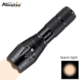 Others bought: Product parameters: Brand Name: AloneFire Model Number: E17 Material: Aluminum Alloy LED Emitter: warm light Voltage: 3.7V Mode:1 mode White light Lighting distance:100-200meters Battery type: 1*18650 batteries / 3*AAA(not include) Lens: with anti-reflective coating Convex lens IP rate: IP65 water resistant Weight: 151g Dimensions: 136mm(length) x 26.7mm(diameter) x 40mm(head) There are currently no product reviews.