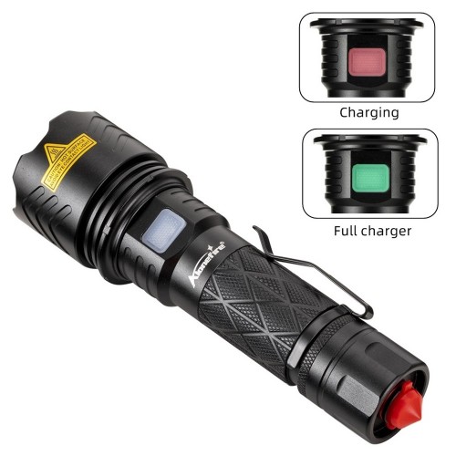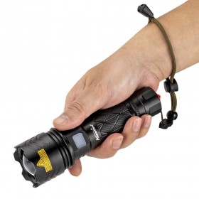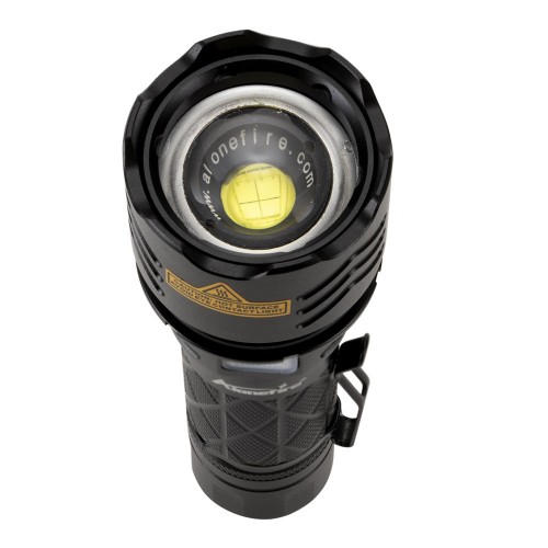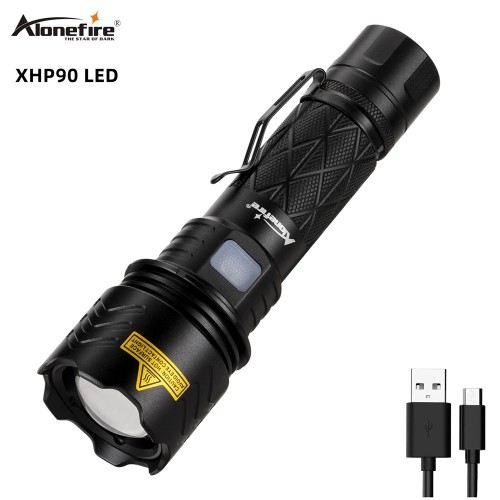 Others bought: Feature: About flashlight: 1. Brand Name: AloneFire 2. Model Name: H55 3. LED: XHP90 LED 4. 5 -Modes: High - Medium - Low - SOS - Strobe 5. Lamp Life: 100,000 Hours 6. Flashlight Color: black 7. Emitted Color: white light 8. Switch: Push Switch 9. Case material: Durable aircraft-grade aluminum 10. Dimensions: 180-201mm(length) x 50mm(head) x 34mm(Tail) 11. Weight: About 308g 12. Lighting Distance: 100-200m 13. LED Life:More than 100000 hours 14. Can live waterproof (can be used in rainy days), but can not dive, can not be soaked in water 15. Battery: For 1 x 26650 battery