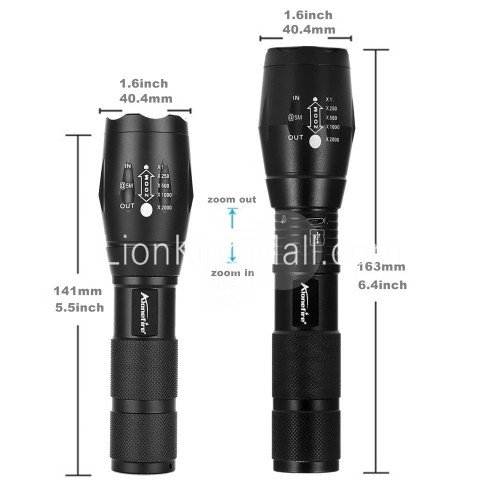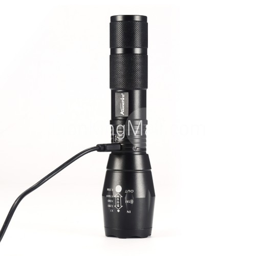 Others bought: Brand name: AloneFire Model Name: G700-U Material: Aluminum alloy LED Emitter: XM-L T6 Charger: Usb charging Zoom: Yes Mode: 5-Mode (high - medium - low - sos - Strobe) Lamp Life:100,000 Hours Emitted Color:White Light Switch:Tail Cap Clicky / Clickie Battery:1x18650 or 3xAAA battery (include) Weight: 237g Size: 141mm(length) x 40.4mm(head) x 28.5mm(tail)