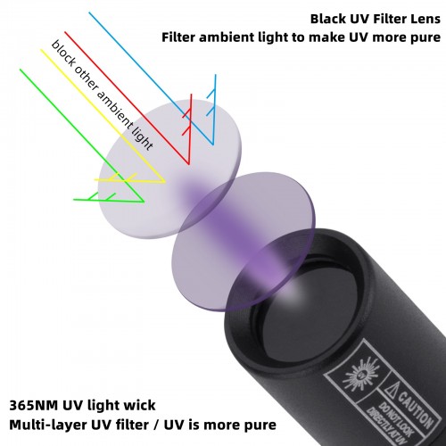 The 365nm flashlight emits invisible light. When it illuminates a substance lacking fluorescent agents, the true original color of the object becomes visible. Conversely, stains become conspicuous.