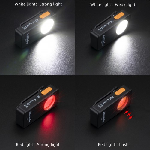 4modes: White Strong light - White Weak light - Red Strong light - Red flash