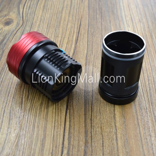 Emitter BIN :V5R8-9 Color BIN :White Working Voltage :4.2V Power Supply :4 x 18650 (no included) Current :2.8A Theoretical Lumens :9000lumens Actual Lumens :8500lumens Runtime :3Hour 3Mode Arrangement :Hi - Mid - Fast Strobe Switch Type Reverse clicky