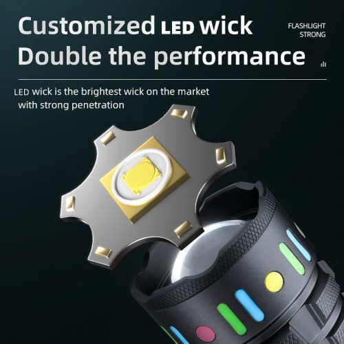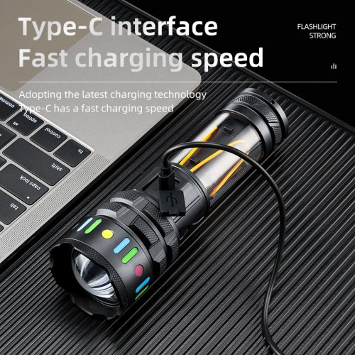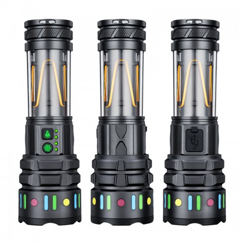 Click the button switch:Side light : Warm and strong light - Warm and sunny-Warm light flashes in the breath