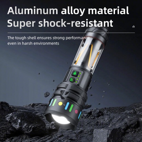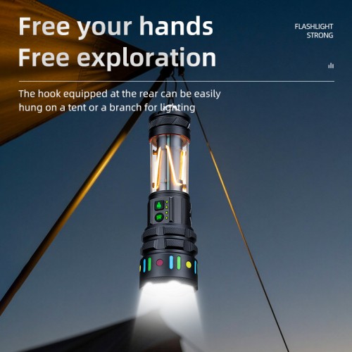 Click the button switch:Main light : Strong light - Medium light - Weak light -Flash - SOS