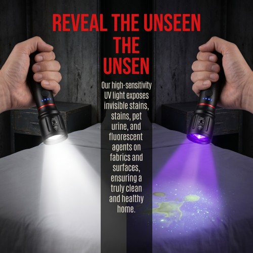 The Ultraviolet flashlight can be used as pet (dog/cat) urine detector/scorpion/finder/fluorescent/detector/currency/card ect.