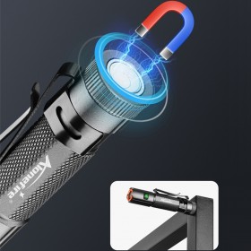 Others bought: Specifications: Product parameters Brand Name:AloneFire Model Name:X59 Product Material:Aluminium alloy Flashlight Color:Dark gray/Orange/Blue LED light bulb:XHP35 High Bright LED Power(W or Lumens): 5W Applicable Battery:14500 lithium battery (Rechargeable battery) Charging method :TYPE-C USB charging Input voltage:5V Work Mode:Six light modes: Click on switch:Weak light - Medium light - Strong light Double click switch: Extremely bright mode Long press switch: Strobe - Red and blue flashing Working time:About 1-4hours(The working time of the lamp will vary due to factors or temperature changes. It is for reference only and not as a basis!) Dimensions:7.8cm/3.07in(length)x 1.8cm/0.709in(head) x 1.8cm/0.709in(Tail) Net weight:About 28g/0.062LB(Only flashlight) Mini High Bright Magnet lighting Pen lightApply to: Home, Outdoor Travel, Backpacking, Hunting, Hiking, Patrol, Fishing, Mountain Climbing, Camping, Work, Exploration, Search&Rescue. Emergencies, Repair,Emergency lighting light. Chose an ideal brightness level to best suit your adventure. There are currently no product reviews.
