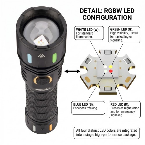 Zoom 4-Colour White light/Blue light/Red light/Green light High Bright lighting Flashlight