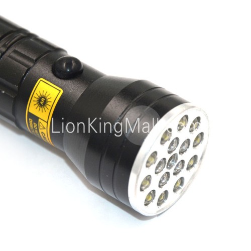 Others bought: Bulbs/mode: 15 UV LED Bulbs+1pc Red Laser WL: 395-400 nm Material: aluminum alloy Size(mm): 124(L)×34(D)×27(Tail) Weight(g): 90 Battery: 3 X AAA 1.5V (not included) Switch: Tailcap Clickie On/Off